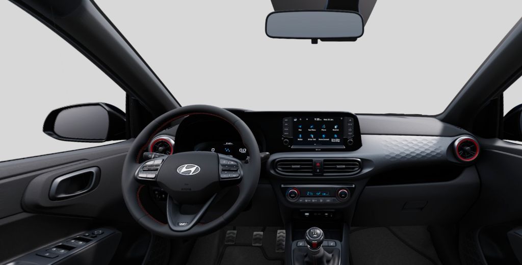 2 Lautsprecher, 3. Bremsleuchte, Ablagebox / Stauraum unter Kofferraumboden, Airbag Beifahrerseite, Airbag Beifahrerseite abschaltbar, Airbag Fahrerseite, Aktives Bremslicht (ESS), Audiobedienung am Lenkrad, Audiosystem: Radio RDS, Außenspiegel elektr. anklappbar, Außenspiegel elektr. verstell- und heizbar, beide, Außenspiegel Phantom Black, Blinkleuchte in Außenspiegel integriert, Bordcomputer, Bordcomputer mit TFT-Farbdisplay, hochauflösend, Dachhimmel schwarz, Dachspoiler, Design- und Ausstattungslinie N Line, Einparkhilfe hinten, Einschaltautomatik für Fahrlicht / Lichtsensor, Elektron. Stabilitätskontrolle (ESC) mit Bremsassistent, Fahrassistenz-System: aktiver Spurhalteassistent (LKAS, Lane Keep Assist System), Fahrassistenz-System: Aufmerksamkeits-Assistent, Fahrassistenz-System: Autonome Notbremsfunktion inkl. Frontkollisionswarnung (FCA), Fahrassistenz-System: Berganfahrhilfe, Fahrassistenz-System: Fernlichtassistent, Fahrassistenz-System: Sicherheitssystem mit automatischem Notruf (ERA GLONASS / eCall), Fahrassistenz-System: Verkehrszeichenerkennung, erweitert (Geschwindigkeits-Regel-/Begrenzeranlage), Fensterheber elektrisch hinten, Freisprecheinrichtung Bluetooth, Gepäck-/Laderaumleuchte, Geschwindigkeits-Begrenzeranlage (Speed-Limiter), Gurtstraffer, Heckleuchten LED, Heckscheibe heizbar, Heckscheibenwischer, Isofix-Aufnahmen für Kindersitz, Karosserie: 5-türig, Komfort-Paket, Kopf-Airbag-System, Kopfstützen hinten verstellbar, Lenkrad heizbar, Lenkrad mit Multifunktion, Lenksäule (Lenkrad) höhenverstellbar, LM-Felgen, Modellpflege, Motor 1,0 Ltr. - 66 kW TGDI KAT, Navigationssystem, Nebelschlussleuchte, Otto-Partikelfilter (OPF), Projektor-Scheinwerfer, Radioempfang digital (DAB+), Reifen-Reparaturkit, Reifendruck-Kontrollsystem, Rückfahrkamera, Rücksitzlehne geteilt/klappbar, Schadstoffarm nach Abgasnorm Euro 6e, Schalt-/Wählhebelgriff Leder, Seitenairbag vorn, Service-System: Online Update OTA (Over The Air), Sitz vorn links höhenverstellbar, Sitzbezug / Polsterung: Stoff, Sitzheizung vorn, Smartphone Schnittstelle (Apple CarPlay & Android Auto), Start/Stop-Anlage, Türgriffe außen Wagenfarbe, USB-Anschluss Mittelkonsole, Verglasung hinten abgedunkelt (Privacy Glass), Warnanlage für Sicherheitsgurte, Fahrer-/Beifahrerseite