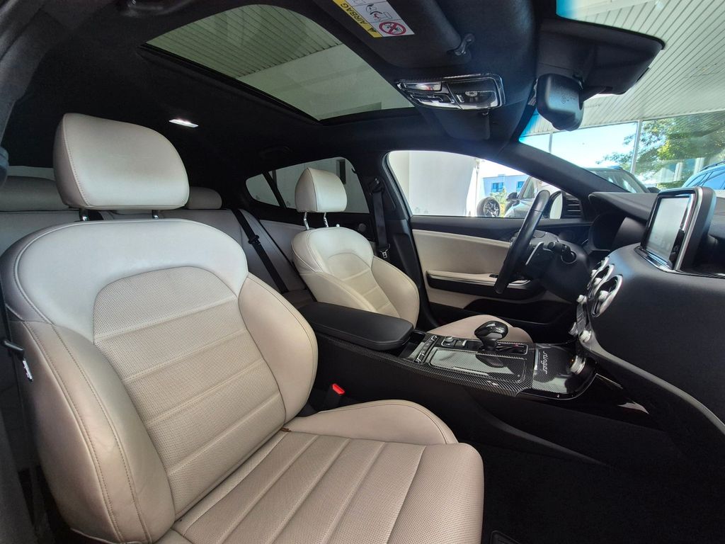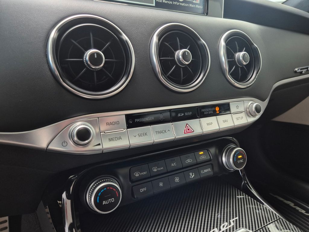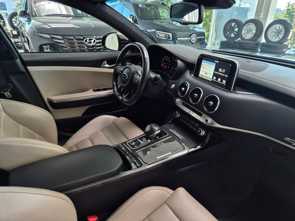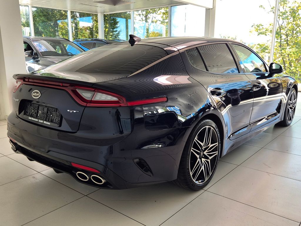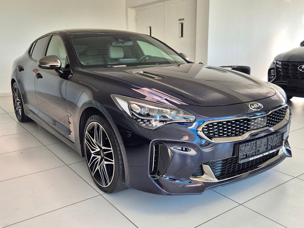 Adaptive Geschwindigkeits-Regelanlage mit Stop&Go-Funktion, Airbag Beifahrerseite abschaltbar, Airbag Fahrer-/Beifahrerseite, Aktive Motorhaube, Aktives Bremslicht (ESS), Audio-Navigationssystem KIA (8 Zoll), Audiobedienung am Lenkrad, Ausstattung GT, Außenspiegel elektr. anklappbar, Außenspiegel elektr. verstell- und heizbar, beide, Außenspiegel mit Abblendautomatik, Außenspiegel verchromt, Bi-LED-Scheinwerfer mit aktivem Kurvenlicht, Bremsanlage: Brembo, Bremsassistent, DAB-Tuner (Radioempfang digital), Einparkhilfe vorn und hinten, Einschaltautomatik für Fahrlicht, Fahrassistenz-System: Antriebsmomentkontrolle (Torque Vectoring), Fahrassistenz-System: Berganfahr-Assistent, Fahrassistenz-System: Fahrprofilauswahl (Drive Mode), Fahrassistenz-System: Fernlichtassistent, Fahrassistenz-System: Frontkollisionswarnung, Fahrassistenz-System: Müdigkeitserkennungs-Sensor (Driver Attention Warning, DAW), Fahrassistenz-System: Querverkehrs-Assistent (Rear Cross Traffic Collision Warning, RCCW), Fahrassistenz-System: Spurhalteassistent (LDWS, Lane Departure Warning System), Fahrassistenz-System: Spurwechselassistent, Fahrassistenz-System: Verkehrszeichenerkennung, Fahrwerksdämpfung elektronisch geregelt (ECS), Fensterheber elektrisch hinten, Freisprecheinrichtung (Bluetooth) mit Sprachsteuerung, Füllstandsanzeige Scheibenwaschanlage, Gegenlenkunterstützung (Vehicle Stability Management, VSM), Geschwindigkeits-Begrenzeranlage, Getriebe Automatik - (8-Stufen), Head-up-Display (Frontsichtanzeige), Heckklappenöffnung elektr., Heckleuchten LED Ausführung: B, Heckscheibe heizbar, Induktionsladeschale für Smartphone, Innenspiegel mit Abblendautomatik, Isofix-Aufnahmen für Kindersitz, Kamerasystem Around View, Karosserie: 5-türig, Kindersicherung, Klimaautomatik 2-Zonen, Knieairbag Fahrerseite, Kopf-Airbag-System vorn und hinten, Lendenwirbelstütze Sitz vorn rechts, Lenkrad heizbar, Lenkrad mit Schaltwippen, Lenksäule (Lenkrad) elektr. verstellbar mit Memory, LM-Felgen, Mittelarmlehne hinten, Motor 3,3 Ltr. - 272 kW V6 TGDI KAT, Nebelschlussleuchte LED, Parkbremse elektrisch, Reifen-Reparaturset, Reifendruck-Kontrollsystem, Rückfahrkamera, Rücksitzlehne geteilt/klappbar, Schadstoffarm nach Abgasnorm Euro 6, Seitenairbag, Servolenkung (Aktiv), Sitz vorn links mit elektrisch verstellbaren Seitenwangen, Sitzbelüftung vorn, Sitzbezug / Polsterung: Leder Nappa, Sitze vorn elektr. verstellbar (links mit Memory), Sitzheizung vorn, Sound-System Harman-Kardon, Start/Stop-Anlage (ISG), Türgriffe außen Wagenfarbe, USB-Anschluss + AUX-IN-Anschluss.